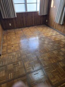 床、表面の痛みと床下の束が腐っているため床全体がフワフワ状態。