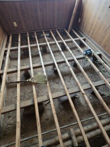 既存床板を解体し床下地から施工し直し、断熱材入れ、合板下地に新しい床を施工